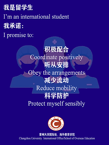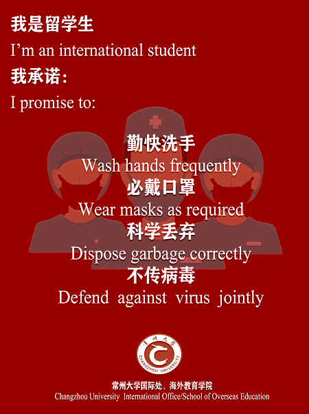 Dear students: In order to strengthen epidemic prevention and control of pneumonia caused by the novel coronavirus and to cut down the spreading channels, in accordance with the requirements of Ministry of Education and Education Department of Jiangsu Province, Changzhou University has decided to postpone the start of spring semester in 2020. The specific start time is to be notified one week in advance on the university website and through phone, cell phone texts, QQ groups and Wechat groups, etc. Please pay attention to the notice.