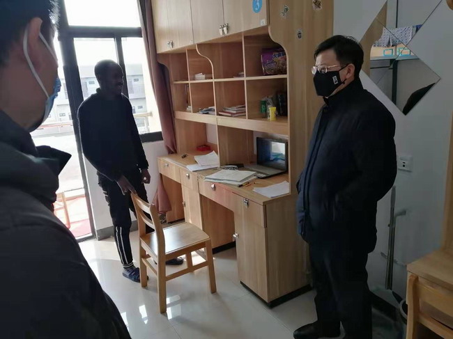面对疫情风险,校长蒋军成第一时间来到留学生宿舍,向他们送去关心和问候,勉励他们坚定信心,相信中国政府和人民,一定能够战胜疫情,一定能够为大家提供一个安定、祥和的社会环境。