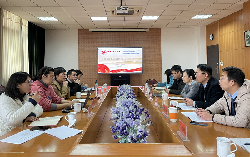 1月21日,常州信息职业技术学院国际与港澳台事务处副处长、海外教育学院副院长周萍一行来我校调研来华留学质量认证工作,国际交流处、海外教育学院、跨文化研究院等相关负责人参加了交流。