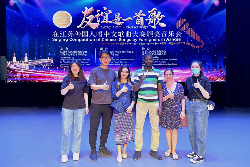 此次活动从2020年年底启动,来自54个国家的163位在江苏工作、学习的外国友人参赛。我校精心组织了校内选拔赛,报送了两件参赛作品,VONGXAY VEOMANY演唱的初赛曲目《花非花》从100件参赛作品中顺利突围,取得决赛资格。在余下一个月的备赛期间,指导老师崔倡和VONGXAY VEOMANY克服时间短、任务重的困难,充分利用平时业余时间,放弃周末休息,刻苦练习决赛曲目《拔根芦柴花》,并不断打磨舞台表演形式,力求呈现最好的舞台效果,最终获得三等奖的佳绩。最后,VONGXAY VEOMANY的曲目作为从21个获奖作品中遴选出的12首歌曲之一,在颁奖音乐会上进行了展演。我校来自西班牙和加纳的2名外籍教师和1名老挝籍留学生也应邀作为后援团参加了活动。