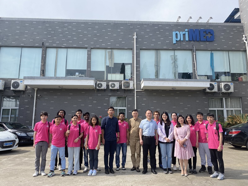 溧阳好利医疗用品有限公司总经理宋波首先代表公司对来访师生表示热烈欢迎并介绍了公司的基本概况、发展历史和企业文化,欢迎我校留学生毕业生加入PRIMED集团驻老挝万象分公司。双方就留学生假期实习、毕业就业、定向招生培训等方面达成了初步意向。最后留学生参观了公司生产车间。