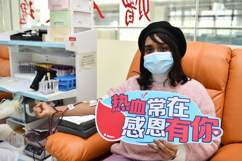活动现场,在工作人员的指导下,留学生有序地依次进行填表、验血、献血,大家带着热情与爱心挽袖献血,一股股承载着爱心的温暖血液缓缓流入储血袋。看到留学生朋友参与到无偿献血中来,现场的工作人员们,都为他们竖起了大拇指。老挝留学生林富洋说:“这是我第一次在中国献血,感觉还不错,以后有机会,还会继续。感谢中国、感谢常大给了我求学的机会”。来自土库曼斯坦的留学生沙呐沙表示,当我的血液流入到中国朋友的身体里,我觉得我们就是“一家人”。