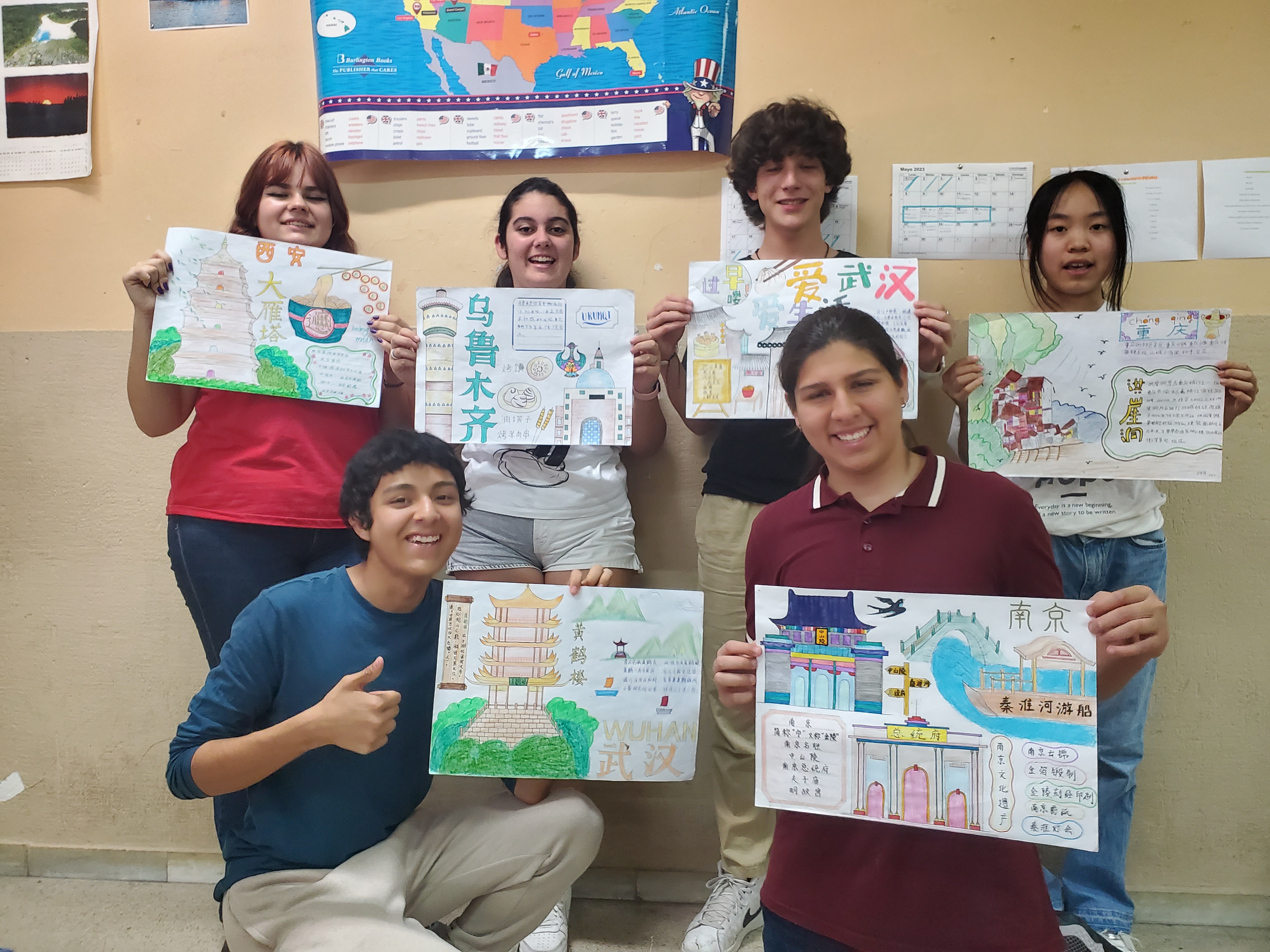安达卢西亚大区孔子课堂中文教师志愿者陈思老师从学生感兴趣的中国城市、景观和美食等入手,引导学生们从自然景观、美丽家园、多彩文明等多方面了解中国,并将汉字学习与绘画作品相结合,鼓励学生使用汉字介绍自己的作品。