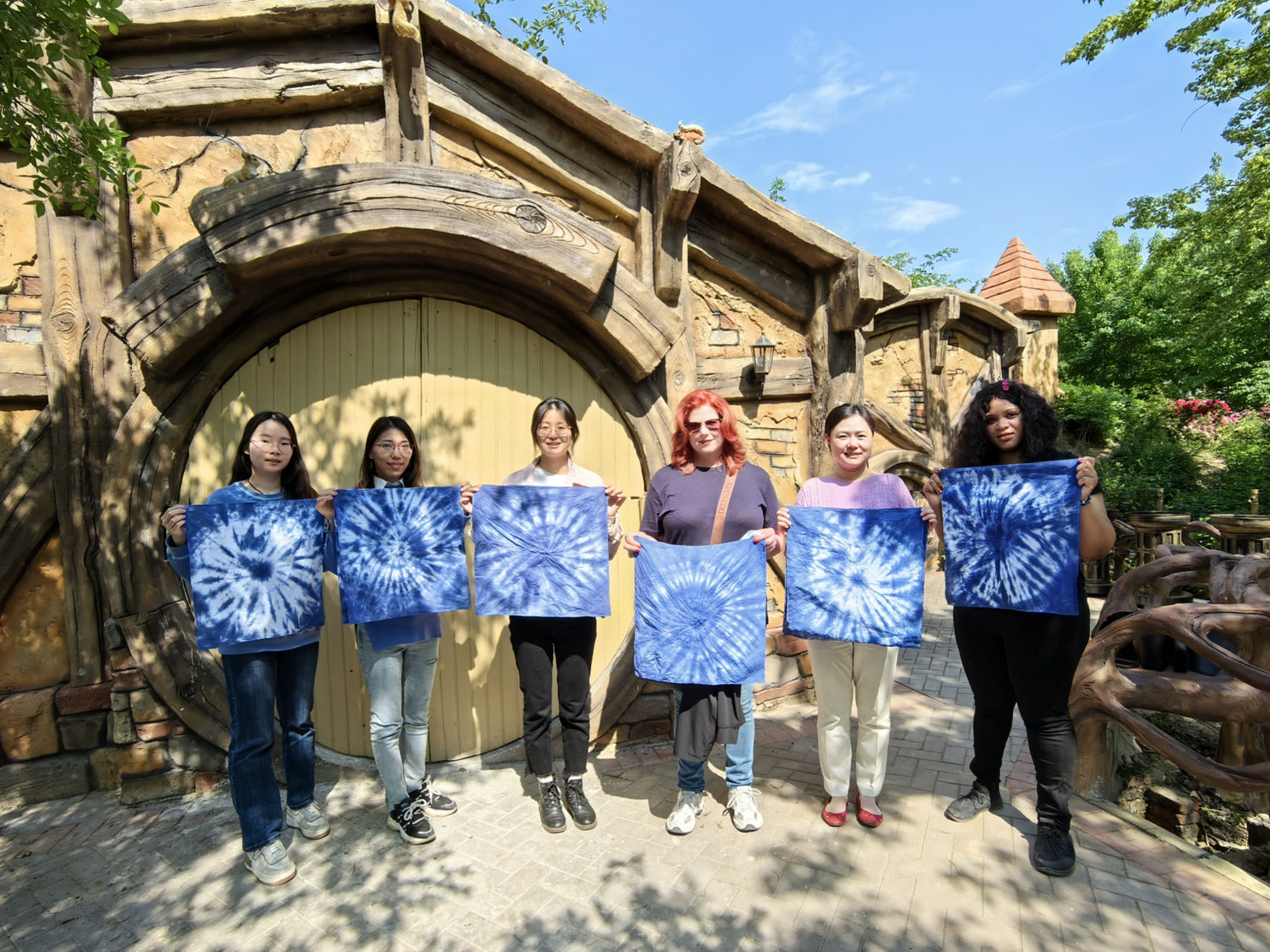 外教们参观了中国乡村的田园风光,感受乡村振兴成果。在扎染工坊,外教们了解了古老的扎染技艺,经过捆扎、浸染、清洗等制作步骤之后创作出了独一无二的作品,在扎染实践中感受中国传统手工艺的乐趣和中国文化的魅力。