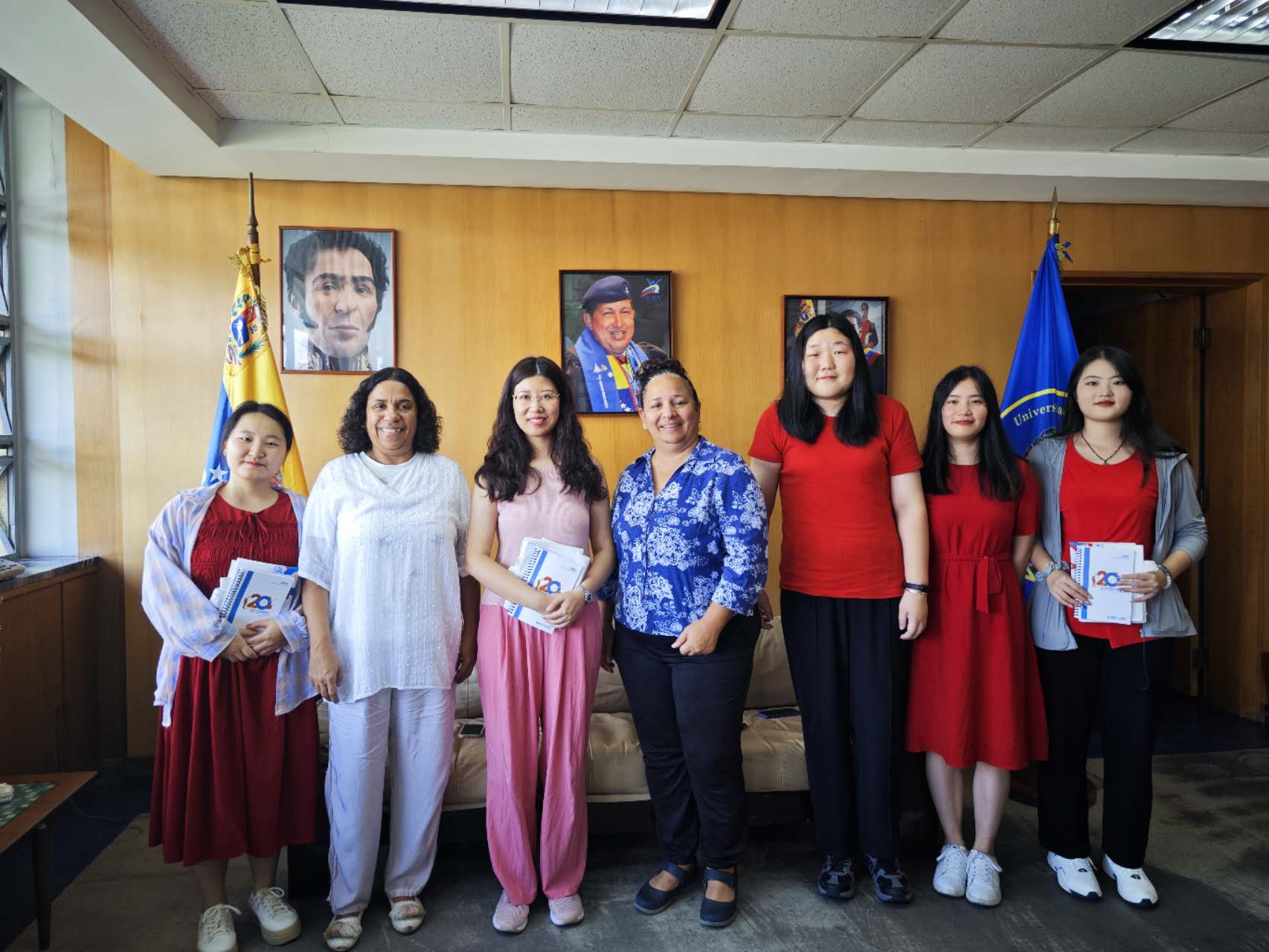 当地时间9月18日,委内瑞拉玻利瓦尔大学副校长珍妮弗接见了我校玻利瓦尔大学孔子学院新任中方院长陈珊以及四位教师志愿者,玻利瓦尔大学孔子学院外方院长路易莎参加了接见。
