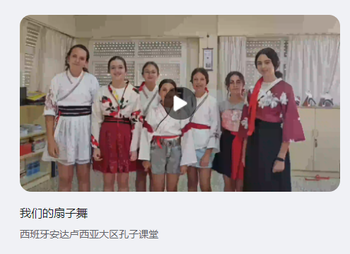 我校西班牙安达卢西亚大区孔子课堂组织教师提交的五部作品中,杜丽瑶和毛露霞合作的参赛作品《我们的扇子舞》荣获优秀奖,唐桑桑参赛的三个作品全部入选,安区孔子课堂荣获“优秀组织奖”,这也是孔子课堂连续三届获得该殊荣。