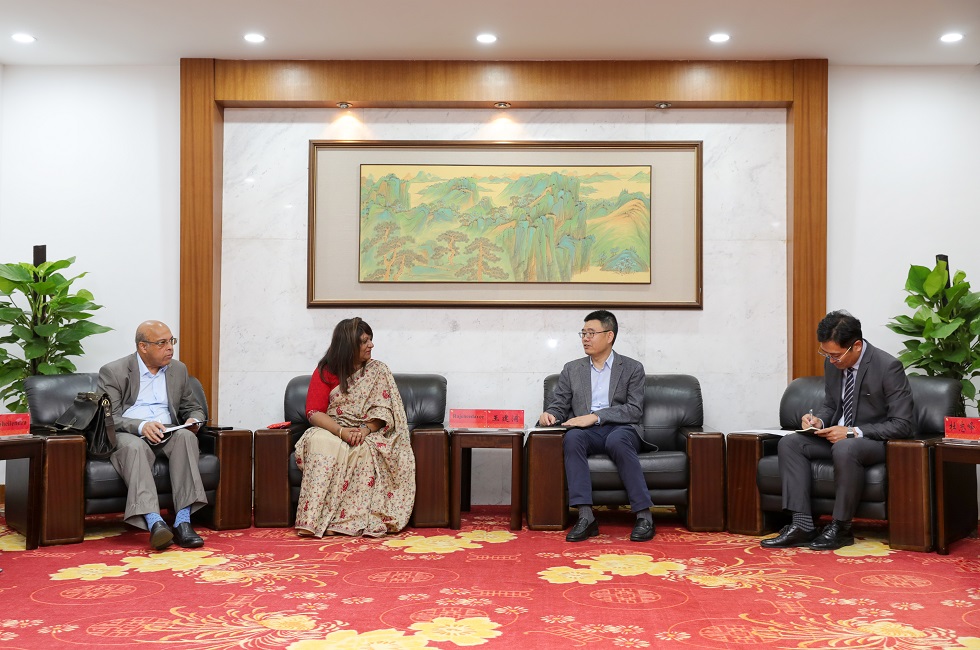 王建浦向拉金妮达维市长一行的到访表示热烈欢迎,并简要介绍了学校办学特色和学科专业的设置情况,他希望通过友城平台,进一步加深我校与毛里求斯高校在高等教育、科研合作和人才培养等方面交流合作,鼓励更多优秀学生来我校学习。