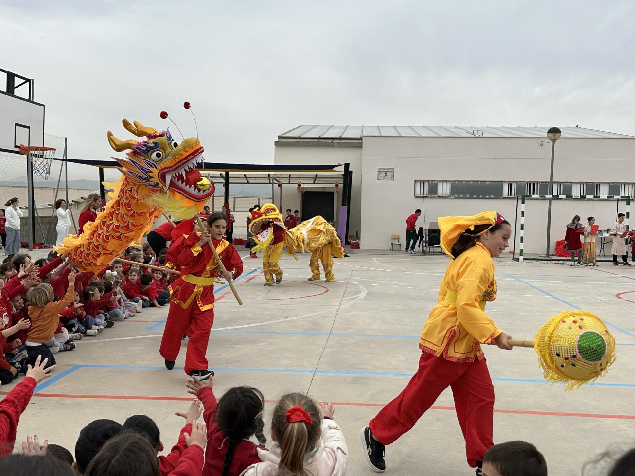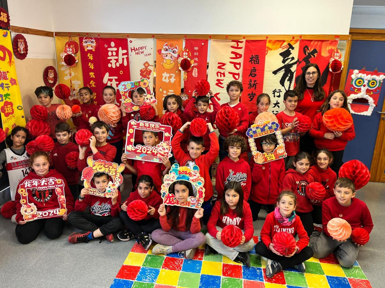 2月8日,西班牙安达卢西亚大区孔子课堂(马拉加教学点)隆重举办龙年春节庆祝活动。课堂师生身穿红色上衣,齐聚一堂,通过歌舞表演、舞龙舞狮、手绘中国龙、幸运抽奖等丰富多样的形式,共同迎接龙年新春的到来。CEIP. Algazara小学校长安娜女士(Ana Pizarro)和IES.Galileo伽利略中学校长胡安(Juan )先生等近550名师生参加活动。