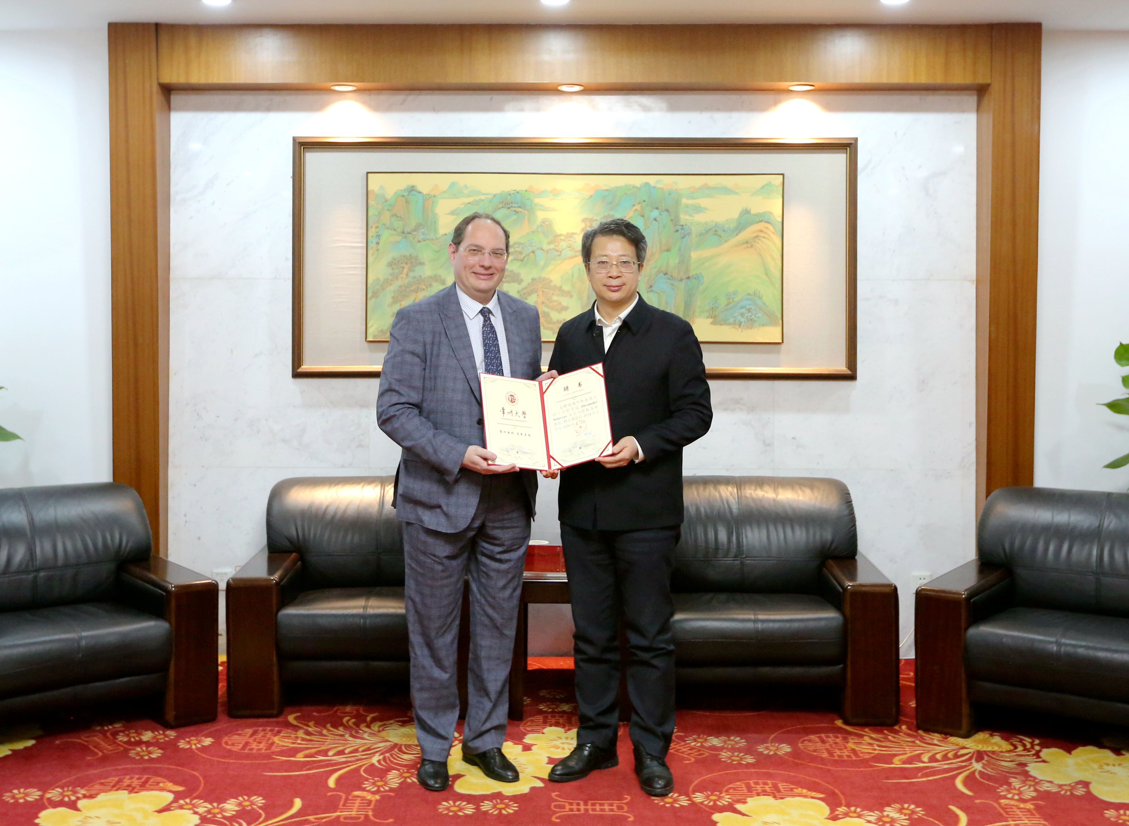 会后,徐守坤为亚历山大颁发了常州大学客座教授荣誉聘书。