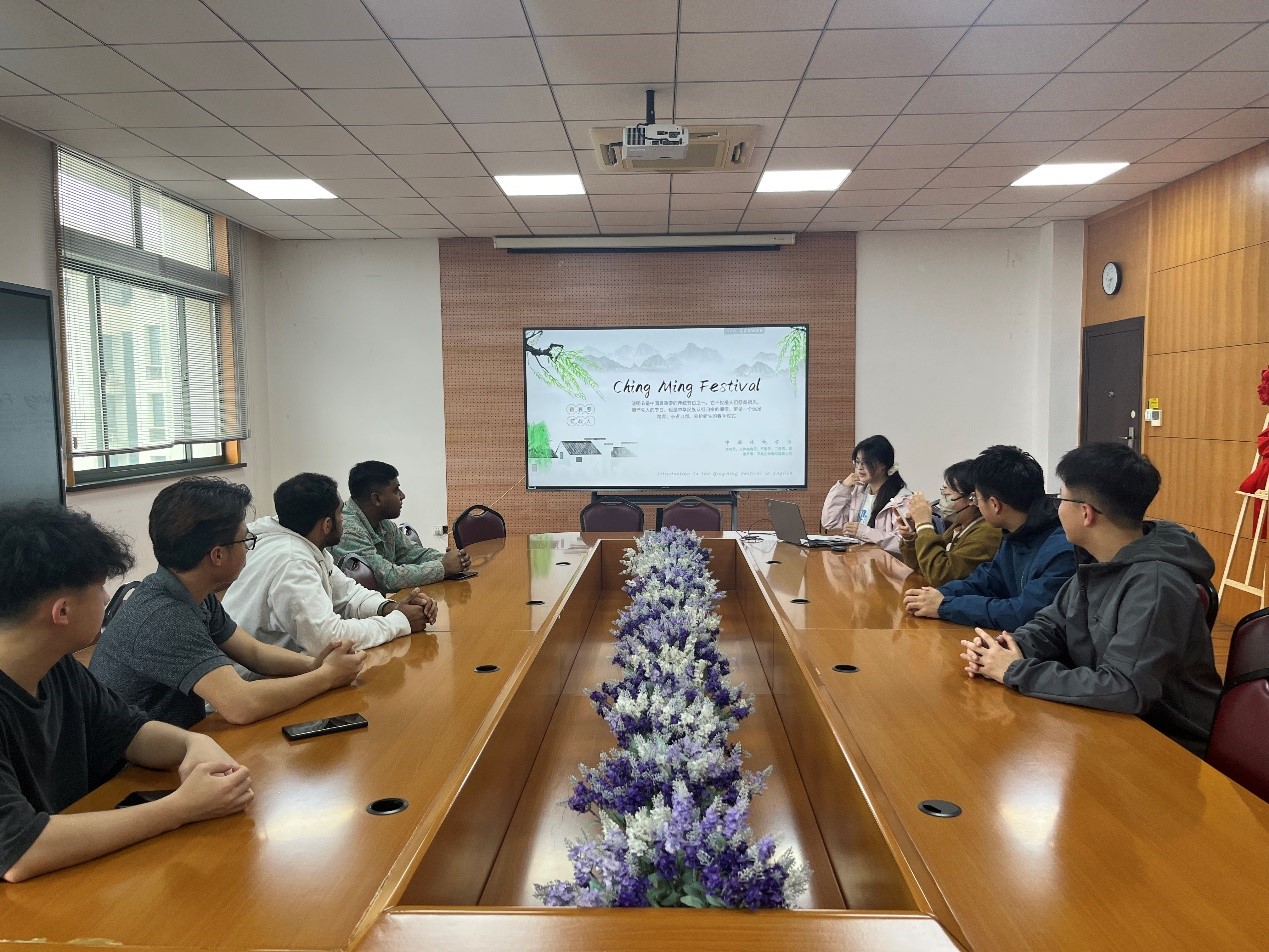 为促进不同文化背景下学生之间的友谊与理解,共同感受中华传统文化的深厚魅力,在清明节来临之际,学院中外大学生在明行楼514会议室,共同学习交流清明文化。