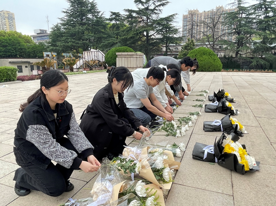 会后海外教育学院党员、团员代表前往常州烈士陵园缅怀为实现国家安定,人民幸福而英勇牺牲的革命先烈。同学们整齐列队,进行悼念仪式,向长眠于此的革命先烈低头默哀。默哀过后,同学们为革命先烈们献上鲜花,逐一瞻仰烈士墓碑,一同回顾烈士们的英勇事迹,同学们被烈士们舍身取义的事迹所感动,深刻理解当下的幸福生活来之不易。学生党员董文桢表示:“革命先辈们为了国家和人民的利益,不怕牺牲,他们英勇无私的精神让我感动和敬佩。”共青团员黄瑞华也认为:“革命先烈们用生命诠释了什么是真正的英雄,什么是坚定的信仰。”