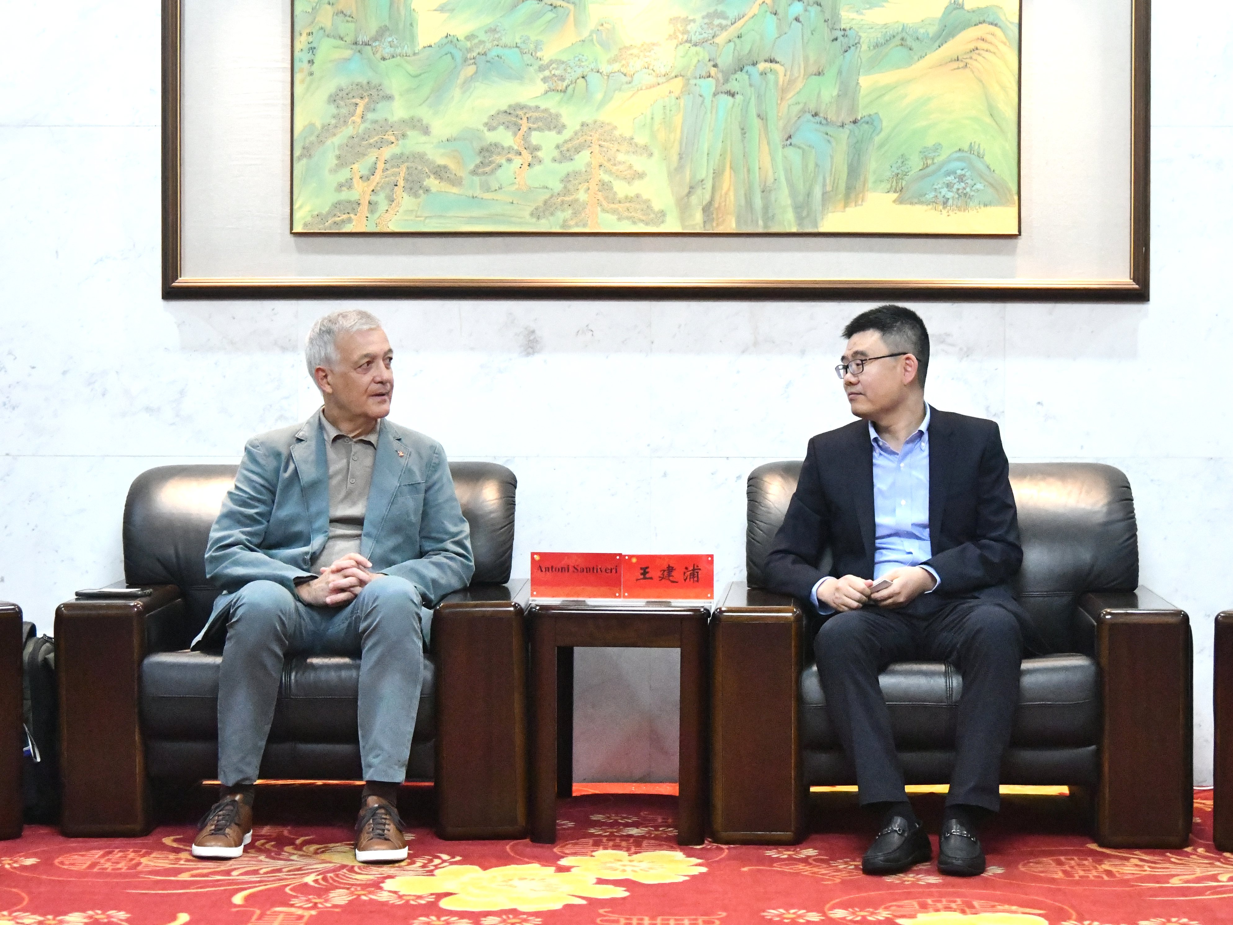 王建浦对安东尼一行来访表示欢迎,并介绍了我校的办学情况和国际交流情况。他表示,中西交往历史源远流长,两国经贸与人文交流日趋紧密,希望两校以此次交流为契机,推动双方在人才培养、学科建设等领域的合作,共同促进两国的教育文化交流。