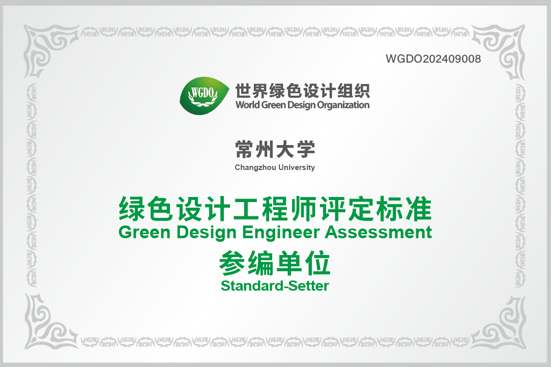 近日,常州大学通过申请,正式加入《绿色设计工程师评定》团体标准工作组,参与该标准编制工作。