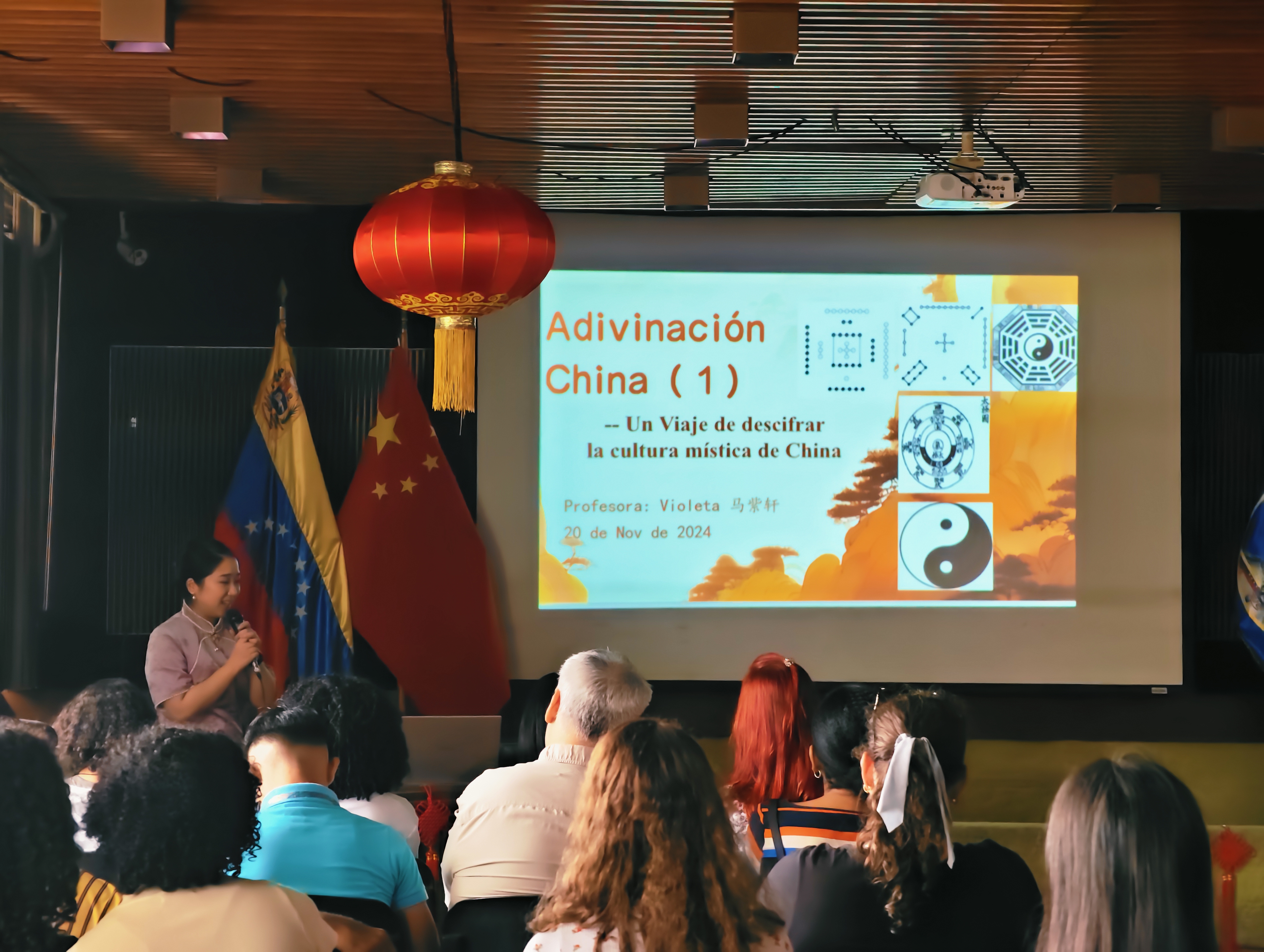 当地时间11月20日下午,委内瑞拉玻利瓦尔大学孔子学院举办了别具特色的“阴阳八卦与易经思想”主题讲座。活动当日,座无虚席,当地民众对中国易经文化,特别是对太极八卦和阴阳五行等思想展现出浓厚兴趣。该活动由孔子学院志愿者教师马紫轩主讲。