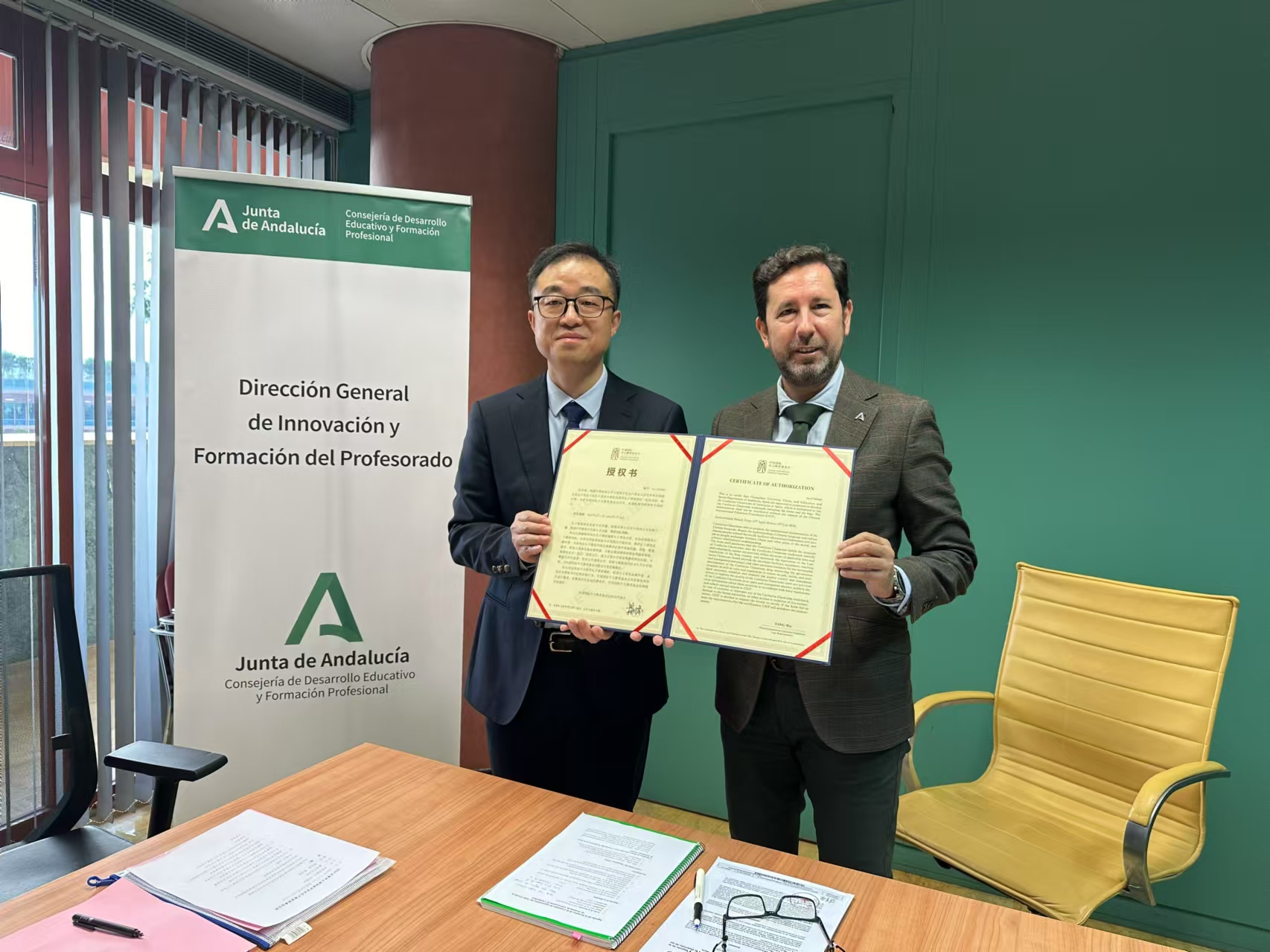 向西班牙安达卢西亚大区孔子课堂颁发授权证书