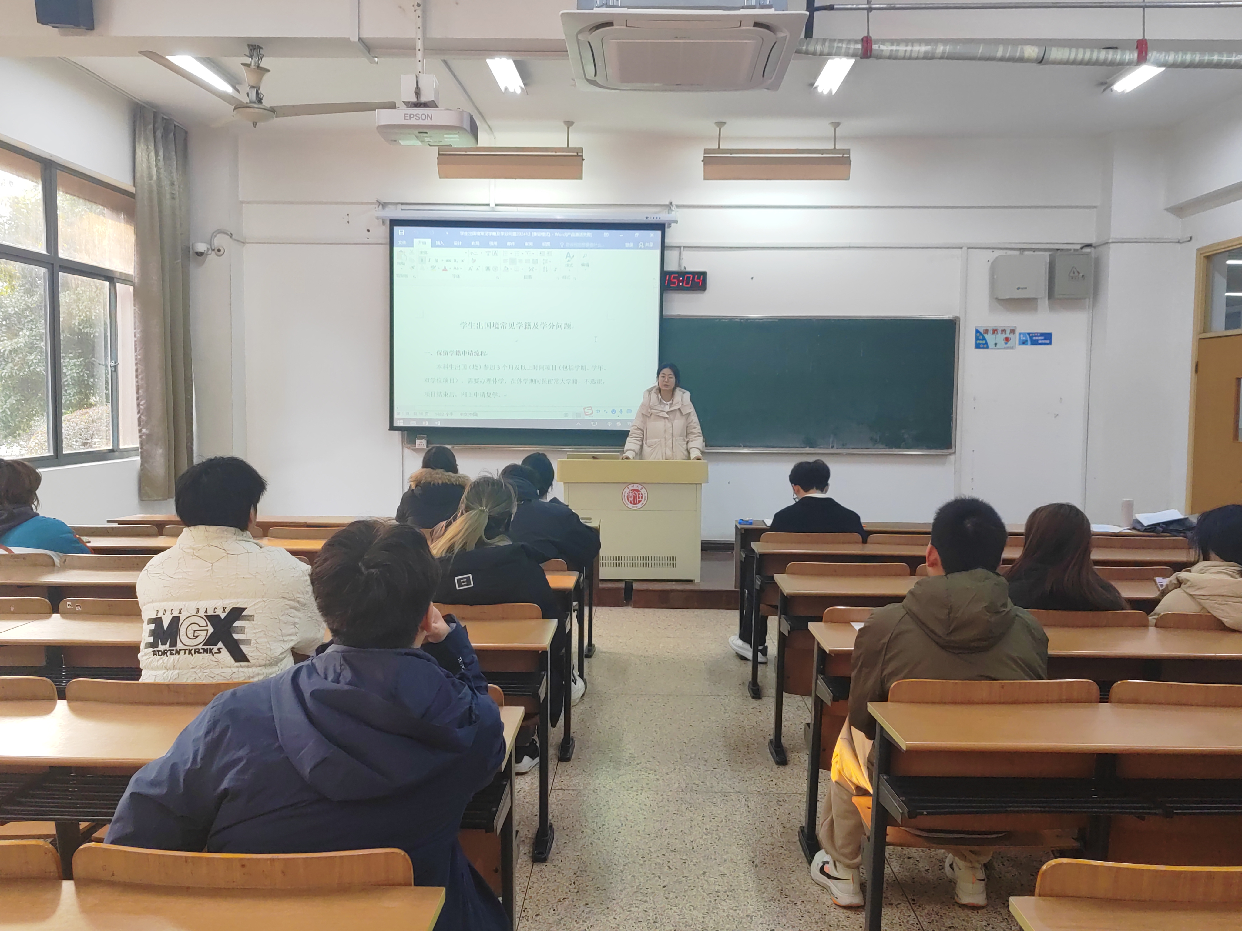 会上,张宙枫老师围绕行前准备、安全防范、思想教育、海外领事保护、防电信诈骗、等方面进行宣讲,并且为同学们分享了许多出国(境)实例,希望能为出国(境)交流的同学提供借鉴。顾倩媛老师就学生学籍变动、学分对接、奖学金申请等问题进行了讲解。