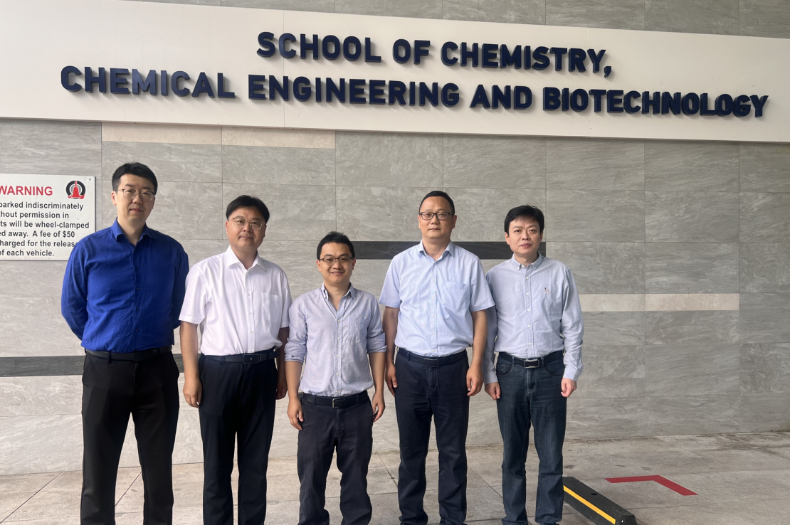 访问新加坡南洋理工大学期间,新加坡国立基金会首席研究员、化学工程与生物技术学院池永贵教授会见了我校代表团。双方就合成催化剂、生物医药和农药等学术问题展开深入探讨,并同意在研究生联合培养、实验室实习、科研合作和教师访学等领域开展合作。会后,代表团还参观了新加坡南洋理工大学化学生物实验室等。