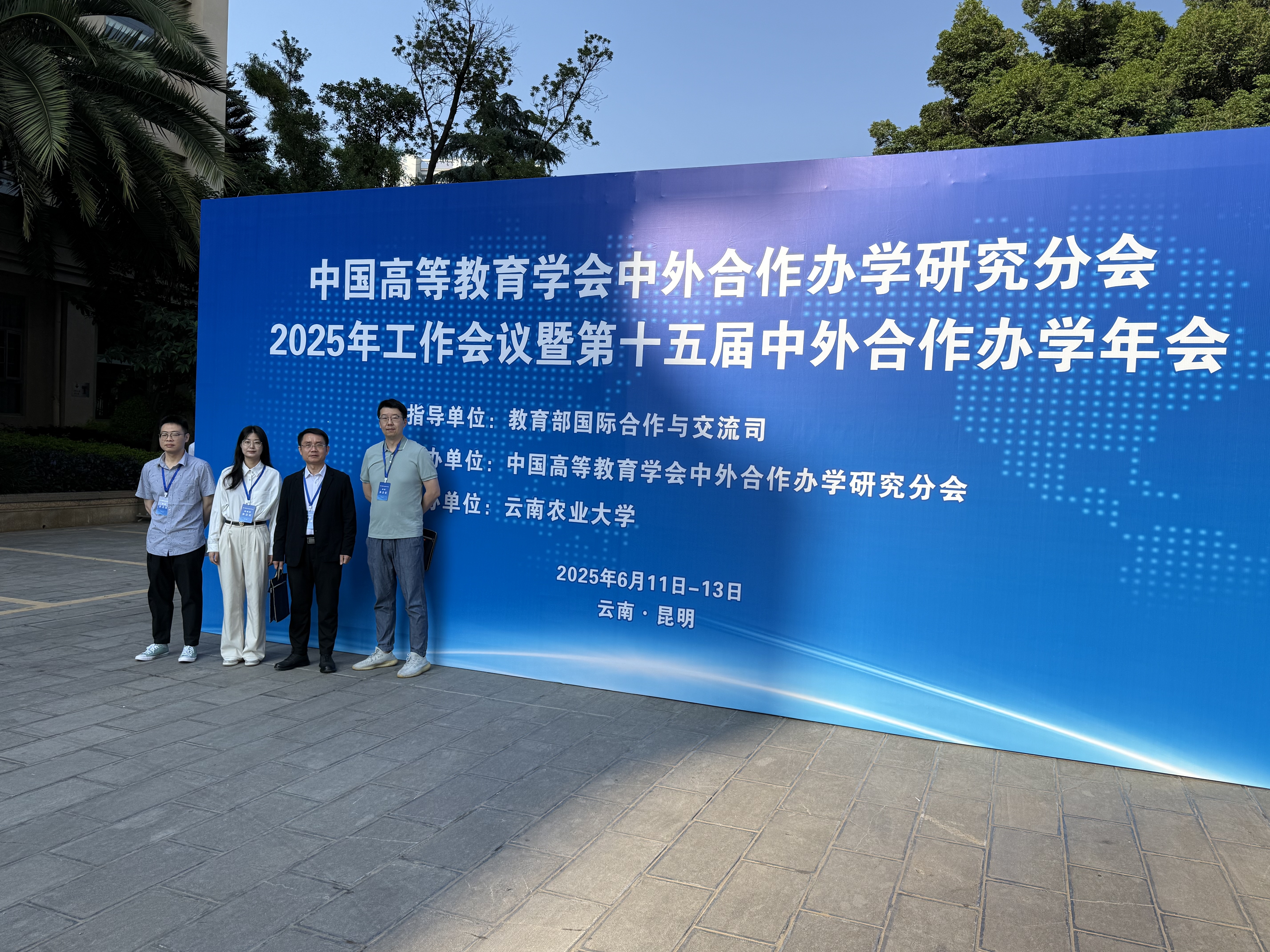 6月11日至13日,中国高等教育学会中外合作办学研究分会2025年工作会议暨第十五届中外合作办学年会在昆明举行。本届年会聚焦《教育强国建设规划纲要(2024-2035年)》引领下的高质量发展新内涵、新特征与新目标。本次年会由教育部国际司指导,中国高等教育学会中外合作办学研究分会主办,云南农业大学承办。我校国际交流处处长魏伟、副处长林栋与相关工作人员参会。