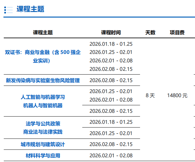 项目费用:约16000元(含住宿、学费;不含国际机票、签证费)