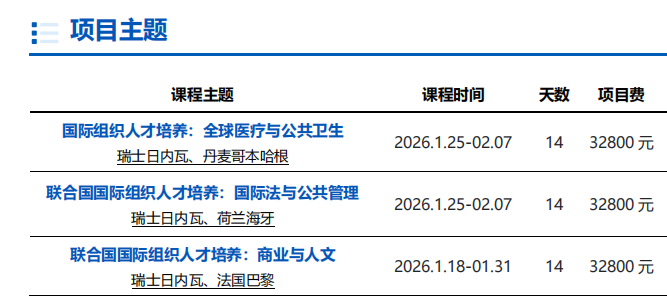 二、2026寒假联合国国际组织人才培养实训项目