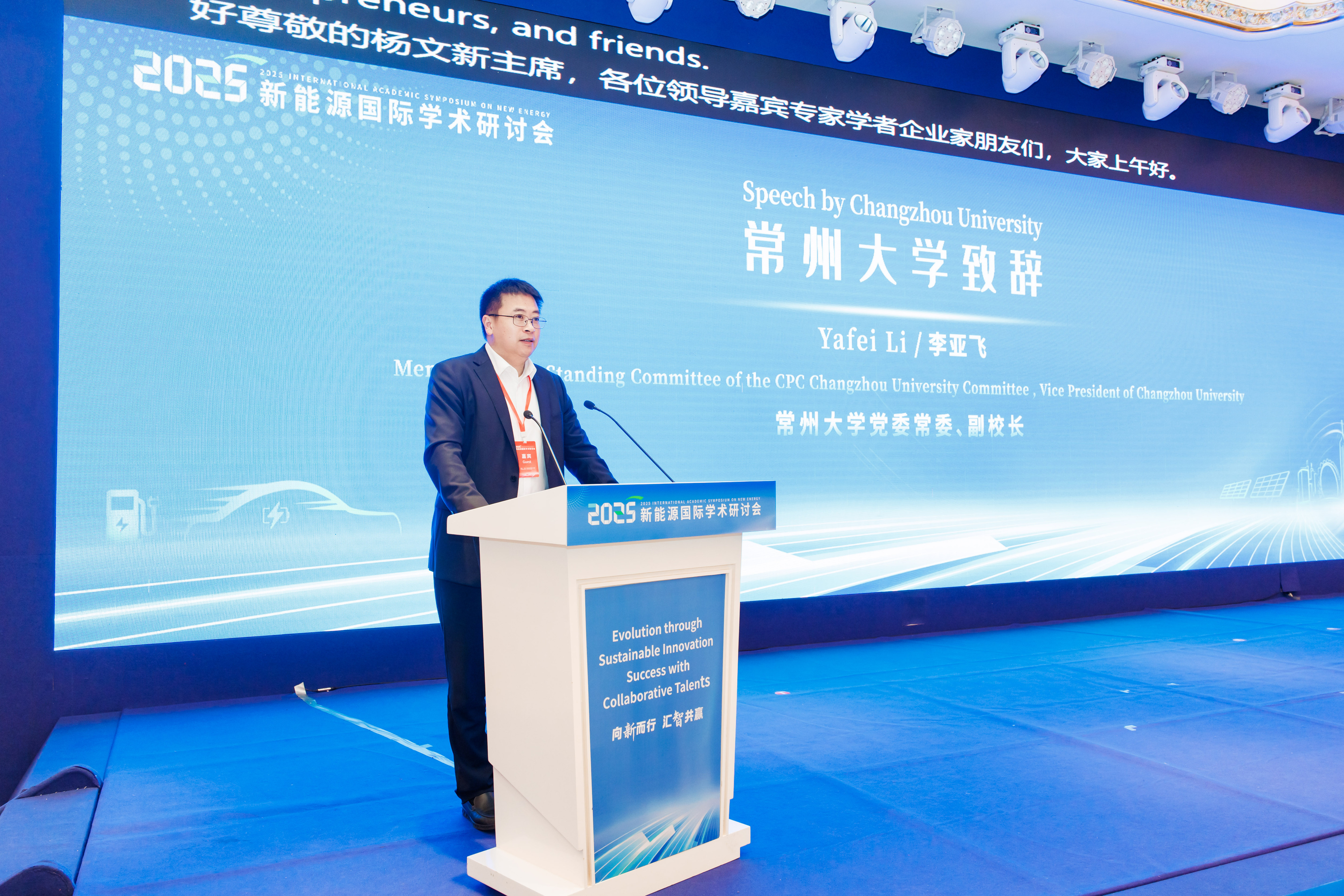 李亚飞在致辞中向所有的中外参会人员表达了欢迎,介绍了学校近年来在新能源领域的科技进步和国际合作成就。他表示,作为大会主办方,常州大学将继续强化人才引育与科研协同间的交流合作,共同促进新能源技术的创新发展和产业升级。