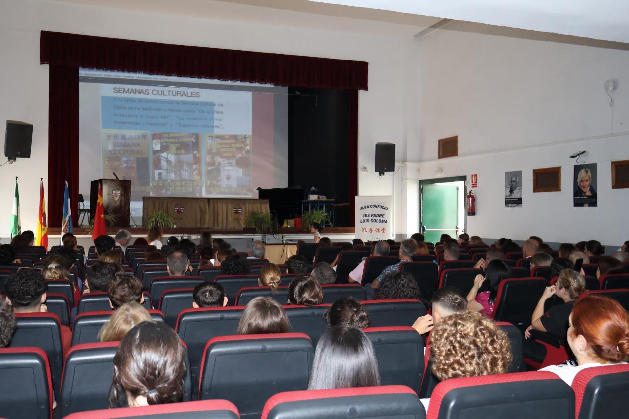 10月23日,我校西班牙安达卢西亚大区孔子课堂加迪斯教学点开学典礼暨颁奖仪式在赫雷斯市路易斯·科洛教父中学礼堂启幕。路易斯·科洛教父中学副校长何塞·拉蒙、教导主任大卫、加迪斯课堂外方负责人哈维尔、西普里亚诺、全体中文教师、获奖学生、家长及华人企业家代表共300余人出席。