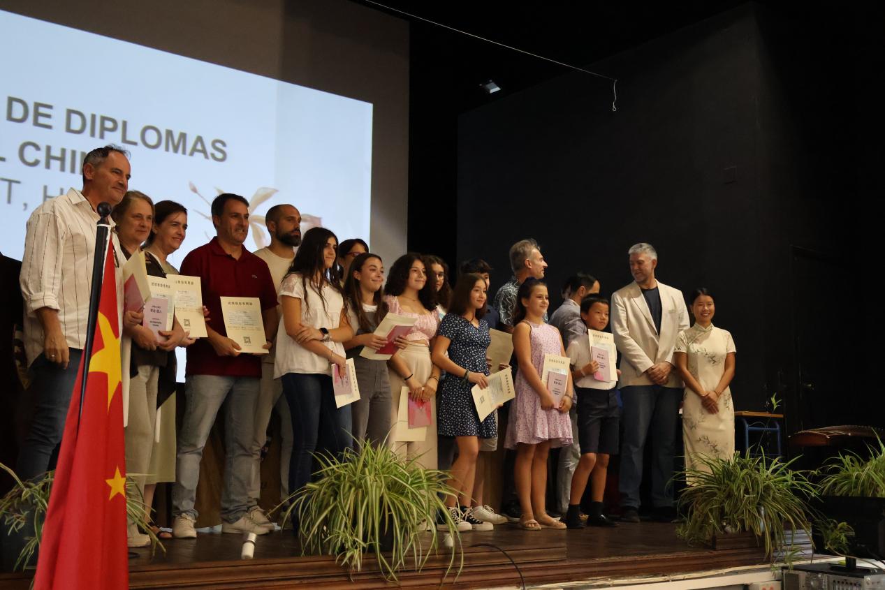 在颁奖仪式上,何塞·拉蒙与李慧慧老师首先为35名在HSK/YCT考试中斩获佳绩的学生颁发证书,并赠予学院译作《职业·旅人》,以资鼓励;随后,又为“汉语桥”中文比赛及“新春贺卡设计大赛”的获奖选手一一授奖,现场掌声此起彼伏。尹星元、李猛两位老师以《青花瓷》等经典曲目奏响传统器乐篇章,将典礼气氛推向高潮,引来全场互动合唱。家长与受邀企业家代表纷纷表达欣慰与自豪,赞叹学子成长。