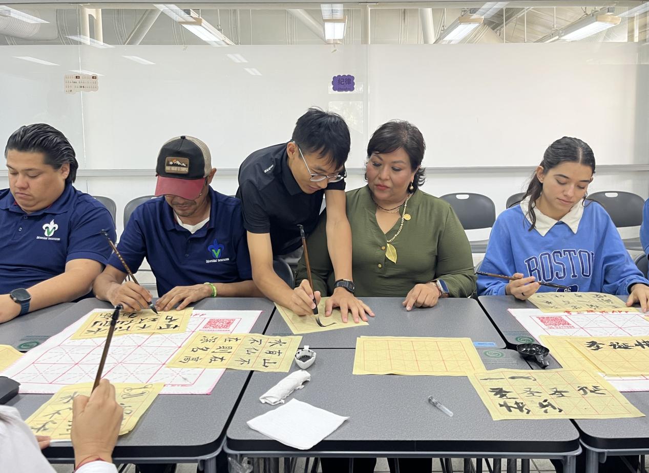 活动中,中方教师时淑磊通过书法展示与教学,吸引了来自韦拉克鲁斯大学各学院约20名师生参与,体验了毛笔运笔、基本笔画与姓名书写等内容,氛围热烈生动。