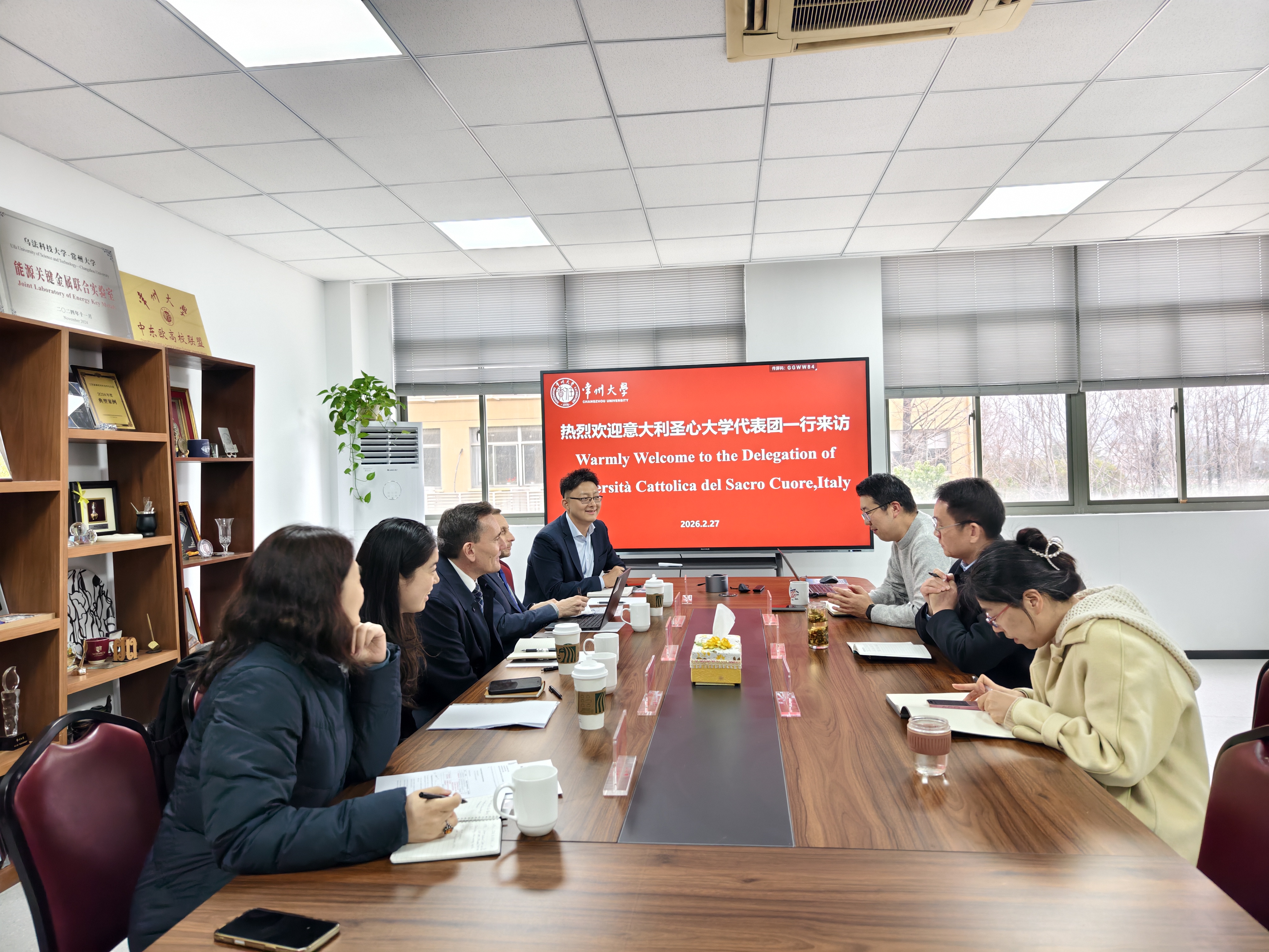 2月27日,意大利圣心大学大学副校长埃迪略·马佐莱尼代表团一行来访我校。党委常委、副校长李亚飞在科教城校区文正楼贵宾室会见了外宾,国际交流处相关负责人陪同会见。